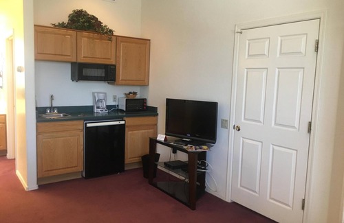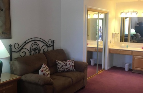 Spacious, newer,studio apartment, 9 ft ceilings, flat screens, cable, free Wi-Fi, steps away from the resort pool and jacuzzi. Queen size bed, leather loveseat and coffee table, eating area.