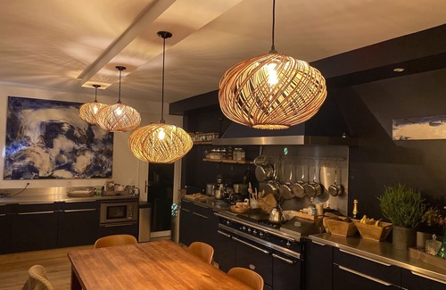 Equipped with large ceiling fans and air conditioning (upstairs), it has 4 bedrooms including 2 master suites with bathroom, 3 WCs, a shared bathroom on the ground floor, a fully equipped kitchen, a large swimming pool ( 10x5m) facing south, a large living room with a view of the forest and the swimming pool, a summer kitchen with plancha to feast by the swimming pool....