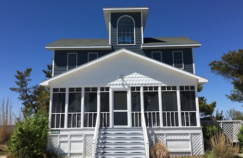 Enjoy Sunday to Sunday weekly summer season rentals in this dynamic 3 level house which boasts panoramic water views from every exquisitely decorated room. Take in stunning sunsets over the Chincoteague Bay from either one of the three large waterfront decks featuring gorgeous brand new outdoor furniture. Fish, crab or boat from the home's private dock or new 64 feet of bayfront boardwalk. Sit on the large screened in porch, which includes a brand new swing, and take in the sunrise over beautiful downtown historic Main Street directly across the Chincoteague Channel. The home features a large open floor plan great for entertaining, sleeps 8 with 3 bedrooms and a brand new queen sleeper sofa in the living room. A futon is also available to accommodate 2 additional guests if needed, as well as a pack and play for little guests. The living room has a large flat screen smart tv with DirectTV for lazy days and there are also tvs in the master and second bedrooms. On the first level there is a half bath and bedroom with 2 twin beds and a private entrance off of the screened porch. On the second level, the master bedroom offers a private bathroom, queen bed and French doors leading to a sunset deck with two rocking chairs. The third bedroom has a double bed and another private bath. There is also a sitting area with lovely bookshelves and stocked with games for your amusement. The third level features a quiet sitting area where you can relax and enjoy a good book or take in the stunning panoramic water views from every window. Bike, walk or kayak to town. Enjoy beautiful Assateague Island National Seashore just a few minutes away. This home promises to make all of your vacation dreams come true.