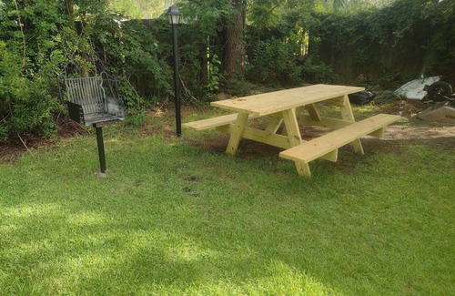 Three bedroom house in a very quiet neighborhood with his own gym and Park, 5 minutes from the beach, 5 minutes from historic downtown Wilmington very close to shopping centers great for biking and walking. If you get tired from the beach you can just sit on the rocking chair on the front porch and enjoy the time or grill something in the picnic area in the backyard! I also run a small charter service for fishing or just visiting some of the many island around, let me know for availability if interested.also there is a guest building on the property completely separated by privacy fence and fence but they have to use the driveway to access the building there is usually no one there however I have family that comes down for work or to visit time to time and they will stay there