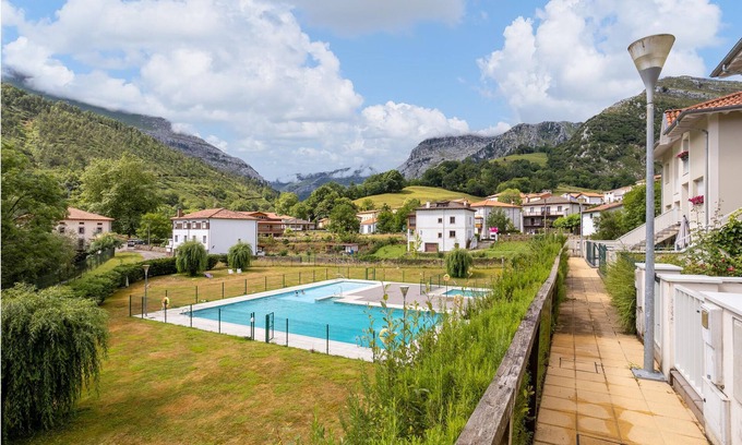 In the hinterland of the north coast of Spain you will find this beautiful vacation home, which offers a nice home for you and your family. This townhouse is ideal for any season. In the living room you can spend time together, because from the kitchen you can participate in the action in the rest of the room. At the dining table you can play board games or relax together on the sofa and armchair. A shared pool with wonderful panoramic views of the mountains completes the offer of this townhouse for you.