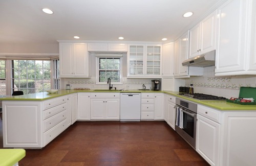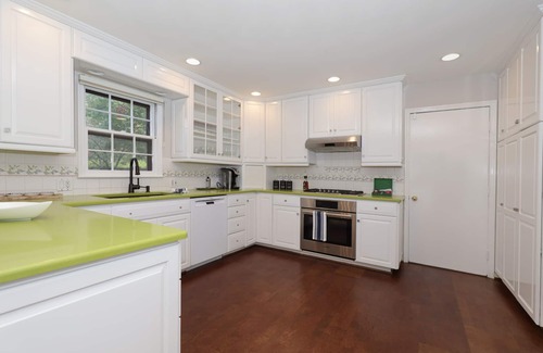 The kitchen comes fully equipped with upgraded appliances, stainless steel stove top & Oven, and sub-zero refrigerator.