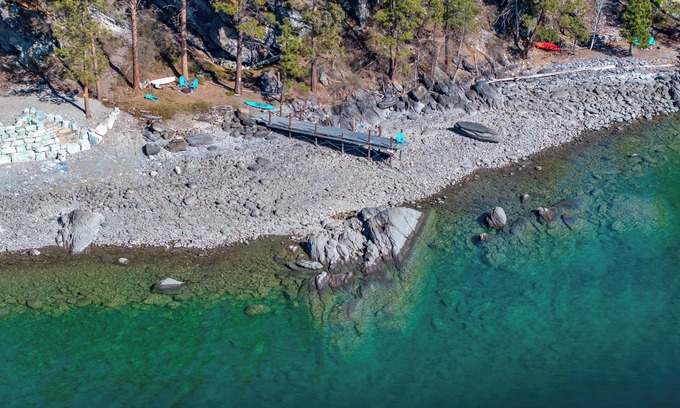 The great outdoors and modern comfort collide at this beautiful Rollins home overlooking Flathead Lake! With 2 bedrooms and 2 bathrooms, this impressive house sleeps 5 guests, boasts a lake front location, and is conveniently situated near local favorites and recreation galore. Enjoy the private dock and beach fire pit when conditions are acceptable and fire restrictions not in place. Upon arrival, you will find an open, well-stocked contemporary kitchen and living area with a beautifully remodeled bathroom on the main floor. From the main area windows, you have an unobstructed view of Flathead Lake and Wild Horse Island. The massive deck offers a perfect space for barbecuing, eating, enjoying a cup coffee or relaxing with a good book. The upstairs leads out to a small patio, while both bedrooms lead to the large back deck. *Note that the trail down to the lake is steep and may be difficult for