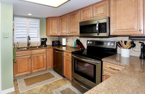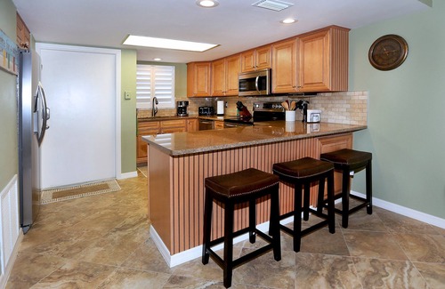 Spectacular 2BR/2BA oceanfront property. Located on the 4th floor and provides breathtaking views of the sunrise. This condo has been completely remodeled with new furniture in every room as well as new appliances. You will find a 55inch TV hanging in the main living room and two mounted 40 inch TV's in both bedrooms. Master bedroom has a comfy king bed, 2 large dressers, nightstands and a chair to sit on if needed. The guest bedroom has two cozy twin beds and a large dresser. Beautifully remodel bathrooms as well as a tub in the master bathroom to bathe your children in if needed. And don’t forget new patio furniture with a pub table and four chairs to enjoy the morning sunrise with your cup of coffee! Ocean Reef Villas is our slice of heaven. You will find yourselves returning year after year due to the pure relaxation of the location, manicured grounds and clean pool. Not to mention the proximity of many restaurants, grocery store, shops, and bars.