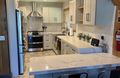 This well-appointed home offers an inviting retreat for you to relax and recharge. Recently remodeled, it now has an upscale, modern, yet still cabin-y vibe.