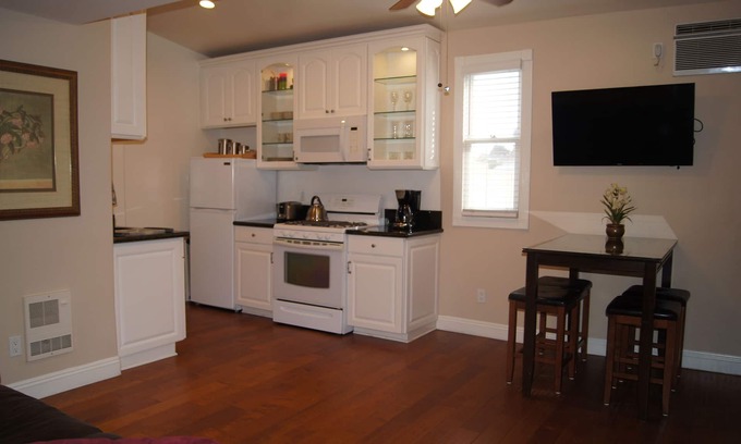 Located in a Historic District on the Slope above Downtown San Diego, this beautiful Queen Ann Victorian accommodates up to 2 guests. This unit is completely private with a separate entry, living space, 2 bedrooms, 2 bathrooms, full kitchen, living room, kitchen nook, living area and patio with private BBQ and patio table and chairs. No expense was spared in the design of this highly upgraded unit which features views of the Ocean, Coronado Bridge and the islands off the coast from the property's front porch. No expense was spared in the layout and design of this unit which is modern classic. The living area features a leather couch, large LED smart TV, dining table and chairs and ceiling fan. The kitchen is beautifully upgraded complete with everything you will need to cook your own meals during your stay with us. The bathrooms are brand new and equipped with plenty of plush towels, shampoo, conditioner, body wash and a blow dryer. There are Queen size beds in each of 2 separate bedrooms. Both Queen beds have memory foam mattresses which are very comfortable. Each bedroom also has a vertical fan, in-wall air conditioner and a high definition LED smart TV with cable access and streaming capability. Additional features include a Backyard common area with Gazebo with table and chairs and Outdoor Fireplace. Our property is located just minutes driving distance to the Convention Center, Gas Lamp district, Ball Park, Coronado Island, the Airport, Balboa Park and the Zoo. Freeway access is located around the corner and bus stop transits to and from downtown can be found within a block. All local beaches are within easy driving distance of the property. Some of Golden Hill’s most popular spots such as the Turf Club, Panchitas Bakery, Krakatoa Coffee Shop, Luigi's Pizza and Golden Hill Park are all within easy walking distance. Enjoy a morning cup of coffee and Coronado Bay Bridge views from the patio table and chairs provided on the front porch or BBQ on your own private patio. There is an on-site laundry facility. Enjoy these beautiful and unique accommodations while experiencing all the best that San Diego has to offer.