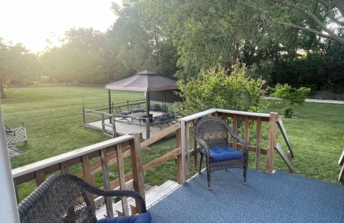 Welcome to your perfect family getaway nestled just seconds away from the serene waters of Lake Shelbyville. Our charming vacation home offers the ideal blend of comfort, adventure, and tranquility, making it the perfect escape for families looking to create unforgettable memories. The house offers a spacious living area where you can enjoy comfortable seating, TV, and a fireplace for those cooler evenings. The modern kitchen is stocked with essentials, including a dishwasher, microwave, and coffee maker. Prepare delicious meals to enjoy in the adjacent dining area, which seats up to eight guests at the table and two additional seats at the cozy island. With three spacious bedrooms, our home comfortably sleeps up to 6 guests. The master suite features a king-sized bed and a ensuite bathroom. Another bedroom is fully furnished with a comfy queen bed and overlooks the beautiful backyard. The third room is a loft with a comfy queen bed and balcony with a view of Lake Shelbyville. From the kitchen, step outside to a deck equipped with a BBQ grill and seating. In the yard you will find a gazebo with seating for six people and a smokeless fire pit as well. The yard is very spacious for games, a bags court , or just relaxing listening to nature or reading a good book. Our home is the closest vacation rental to the lake. It is located just seconds from Lake Shelbyville Beach and Boat Ramp to the East. To the West the home is seconds away from Shelbyville's Forrest Park. Forrest Park provides a swimming pool, sunken gardens, baseball and softball fields, and the famous Chautauqua Building. Please book your stay at Our Dam House today and experience the ultimate family vacation by the lake. We look forward to welcoming you and your family to our home away from home.