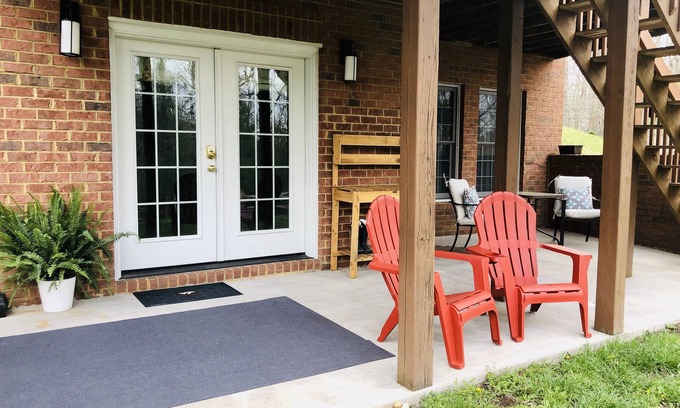 Stay and enjoy the beautiful views out the back door of our Virginia Tech home in the hills! A short 10 minute drive to downtown Blacksburg and 5 miles from Lane Stadium. This one bedroom with extra bed, basement apartment is in a very quiet neighborhood & has its own private entrance with lots of room to just relax. Living room has a large screen tv (with Roku, foosball table, chess, board games, dvds & a large sectional sofa. We can also set up a full (not air) bed in the space if needed. There is an eating area with bar stools, a small sink, fridge, microwave, coffee maker, toaster and tea kettle. Bedroom has a comfortable queen size bed, tv with Roku and gaming system. Large bathroom with a standup shower and plenty of towels. There is also a dedicated work space in an adjacent room. Everything you need is available to set up the fire pit for you (weather permitting). Parking is in our circular driveway. Just a short walk down to the back entrance. Plenty of chairs to sit outside and enjoy the quiet. We also have two dogs one of which is a Great Pyrenees (120+ lbs) that you may hear tromping around upstairs. We live on the premises and are here to help 24/7 to make your stay in Blacksburg an enjoyable one! Welcome to the NRV (New River Valley)!