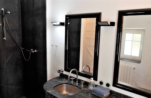 The house has 2 more or less independent floors: the ground floor has a bedroom with a bed of 1.40 x 2.00 m and a door that leads to a terrace covered with climbing plants; a bedroom with 2 single beds; a bathroom with shower, toilet and sink; a dining room and a kitchen. The kitchen and dining room have a door leading to a covered porch with table and chairs and a barbecue. By an external staircase you reach the upper floor: there is a bedroom with a 1.80 x 2.00 m bed. with air conditioning and a small balcony; a living room with a door that leads to a terrace of 40 m2 with sun loungers and a sofa to enjoy the views and relax in sun or shade; an office / reading room with a small balcony and a small kitchen with sink, refrigerator, microwave, coffee maker, kettle and table with chairs. The house has fireplaces in the living room, dining room and office and has central heating. The pool is located right in front of the house.