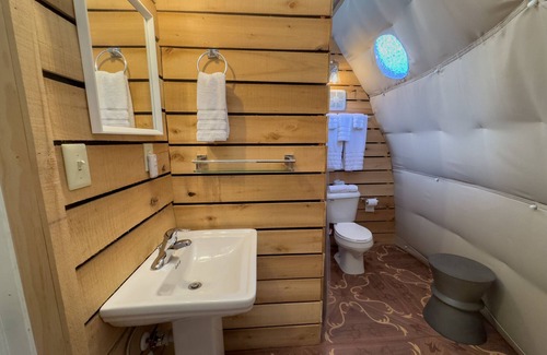Located in the boutique town of Sutton west Virginia. Come stay in a air-conditioned Dome with 2 queen beds, a full bathroom and shower. a wet bar, microwave and mini fridge. Everything to relax in Nature in comfort! Located in the Elk River Hotel and restaurant you can order your breakfast and Dinner. Visit the Bigfoot Museum nearby or take the hiking trails to see if you can find Bigfoot! Kayak on the river or go biking on the rails for trails. You will enjoy the Chestnut dome and the whole family can be comfortable in nature.