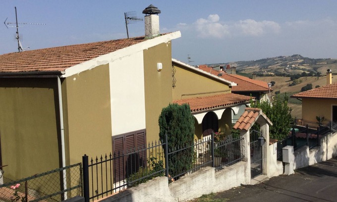 Beautiful villa 10 minutes from the sea, two double bedrooms with a bathroom, possibility of adding beds, with car parking inside the fence and outside parking spaces, ideal for a family looking for a quiet and relaxing holiday, The house is situated in a small village (Casoli Di Atri) offering bars, tobaccos and supermarkets. To get to the sea resorts take about 10 minutes drive. At one hour's drive, you can reach beautiful mountain resorts (Gran Sasso National Park and Laga Mountains). Two double bedrooms, living room, kitchen. Outside, around the house there is a fenced garden with tables and chairs to relax outdoors.