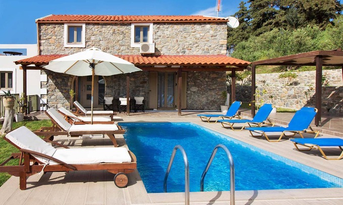 Best-rates for the Platanias villa starts from $323 per night with includes Pool, Guest Services, Laundry, Parking, Bedding/Linens, Wellness Facilities, Barbecue/Outdoor Cooking, Designated Smoking Area, View, Fireplace/Heating, Child Friendly, Internet, Kitchen, Air Conditioner, TV, Private Pool, Ocean View, Balcony/Terrace with all other amenities. Perfect for Weddings is committed to ensuring every guest experiences a comfortable and extraordinary stay, whether planning a romantic getaway, a honeymoon, a pet-friendly stay, or celebrating with the entire wedding party.