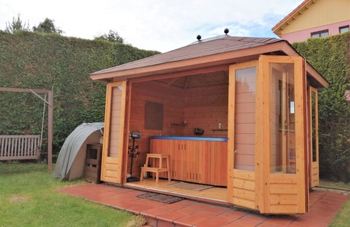 The outdoor hot water Jacuzzi (in a glass hut) for 4 people can be used in summer and winter, with the same views of the house. There is also a 90 cm pool. high, with semi warm water in summer, trampoline, playhouse for children and many games and videogames (PS3 and Wii).