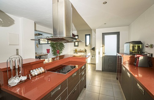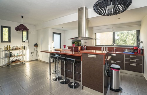It is a two storey villas with three bedrooms and four bathrooms, one of them en suite. It has a large kitchen fully equipped with utensils and appliances. A spacious sitting area, a fireplace as well as a large dining table urge you to enjoy your day in-house. The back yard has a wood oven and a wonderful sitting area. At the frond yard there is a beatifull swiming pool with hydromasage.