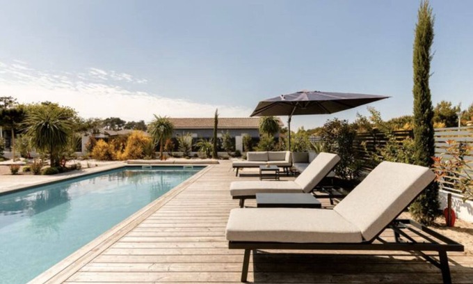 New in Montalivet! Luxury 200 m2 villa with heated 4x9m swimming pool and private “pétanque" field, ideally located 800m from the beach and town centre, yet in a very calm area. Large open kitchen, TV (inc. Netflix, Disney), Airplay B&O sound system, high-speed fibre wifi, landscaped garden, 2 large terraces, table tennis and BBQ plancha. Very comfortable designer sun loungers. Ideal for family holidays or with your best friends!