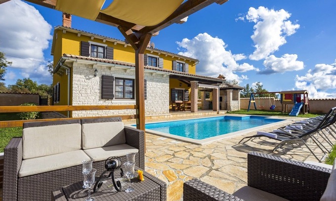 Beautiful Villa, ideal for families with children is located in Municipality of Zminj. Beautiful Villa, ideal for families with children provides accommodation, featuring Pool, View, Entertainment, among other amenities. This Villa features Pool, View, Entertainment, to make your stay a comfortable one.