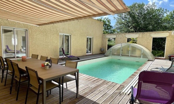 Located on a large plot of 1,800 m², you will appreciate its calm and its various places, notably the terrace with its swimming pool (unheated) of 8 m x 4 m with an inclined depth of approximately 1.5 m.