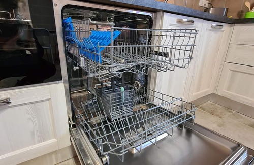 The property is fully equipped, also the kitchen (with dishwasher). If you feel like doing some laundry, a washing machine is also available.