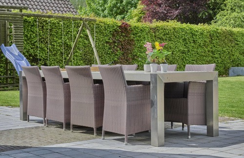 spa bath, sauna, garden(fenced), garden furniture, 1x parking, trampoline, swimming pool(private, outside, heatable, 8 x 4 m depth: 1.2m, opened from May upto and including Sep), sand pit, play equipment