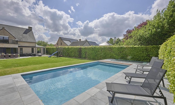 This spacious holiday villa is located in Haspengouw, Belgium's fruit region. The attractively furnished house is ideal for a cozy family holiday and features a large garden. You can relax by the swimming pool, hot tub, or sauna while the children have fun on the trampoline and play equipment. Please note that the pool is not heated at night when temperatures are below 12 degrees. Enjoy the peace during your well-earned holiday in this beautiful region!