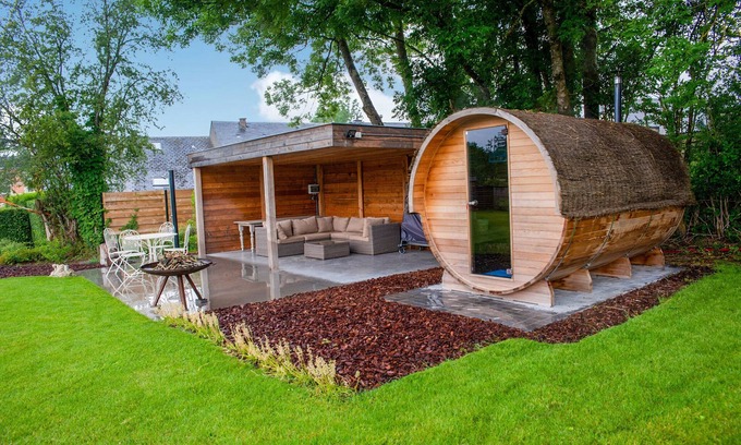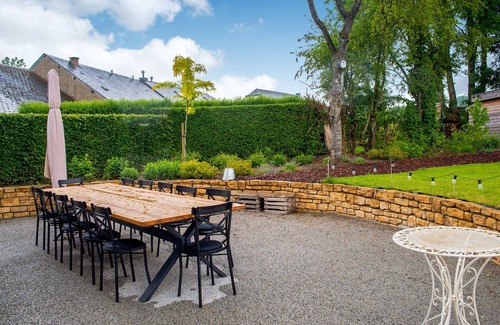 The Presbytère, a beautifully modern and authentically renovated villa, is located in Les Bulles, a district of Chiny in the Ardennes. Larger groups and families can spend relaxing days in the spacious garden with a lounge area and outdoor sauna.
