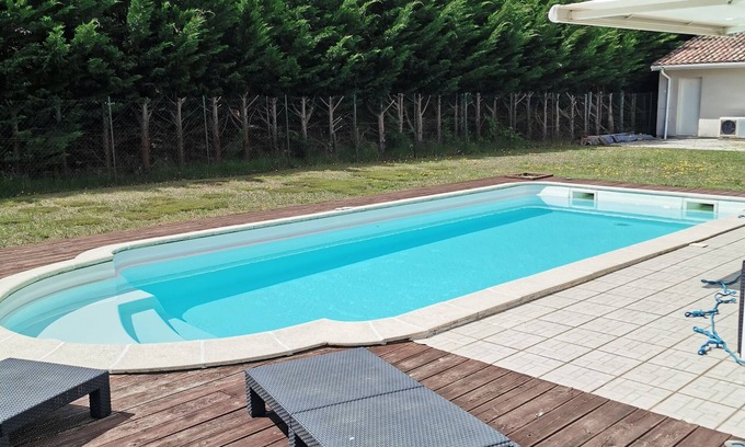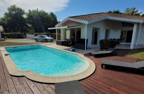 - Holiday house MIMIZAN, Very warm wooden terrace, private swimming pool.