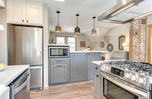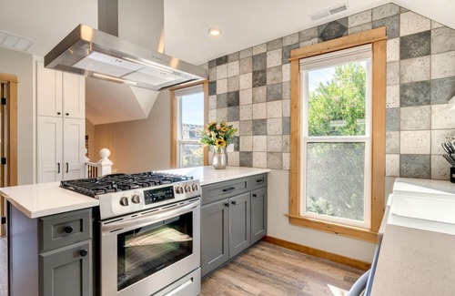 This 2-bedroom Victorian gem, built in 1899, has been beautifully restored with a rustic-modern blend and is walking distance to Portland's charming Sellwood neighborhood. Ascend the stairs from the private covered porch to a bright, open living area and fully-equipped kitchen. The kitchen, with a dining bar features open shelving, Italian tile, quartz countertops, stainless appliances, gas range, and built-in microwave — fully furnished with everything you need for cooking great meals. The two bedrooms are separated by the living space, each featuring walk-in closets and blackout shades. Relax in the bathroom complete with a soaking tub, rain shower, and heated floors. Amenities include Wi-Fi, cable, and a smart TV, plus shared laundry on the lower level with a separate entrance.