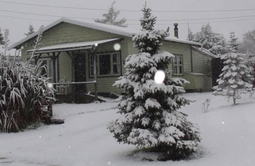 This is an old Mill House converted to a ski lodge on a quarter acre section with spectacular views of Mount Ruapehu.The ideal set up is great for 2 families for an Adventure on the Volcanic Plateau or a group wanting comfortable practical accommodation as a base 15 minutes from Whakapapa Ski Field, the start of 42 Traverse and Tongariro Crossing. This cosy bach has a Kent fire which quickly warms up the house and keeps you warm. The gas hot water means there is always a quick supply of hot water and the house now has a brand new bathroom with toilet , shower and vanity in the main bathroom and in second bathroom is a toilet and small vanity. This is all BRAND NEW. Plenty of dry firewood is stored in the attached workshed which is set up for ski/board tuning . A mud room and drying room complete the ideal set up for outdoor activities. Board games, darts and Sky TV with My Sky mean when the weather lets you down you can make your own entertainment or be entertained. The house in McKenzie St is a short stroll from the Railway Station, Cafes and Ski/Snowboard Rental Shops.