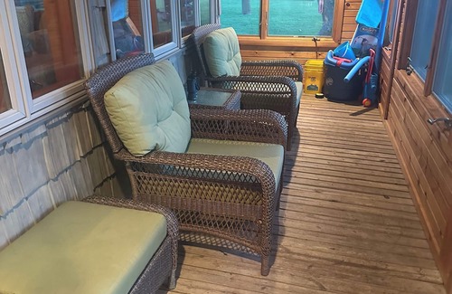 Wonderful and clean 2 bedroom cottage right on the Wolf river. Open concept with wrap around screened in porch around 3/4 of the cottage. Has a fire pit for night time fun and big live well for the avid fisherman. The dock is perfect for relaxing with friends and family or fishing. Has multiple slots for fishing poles. The views at sunset are breathless. This cottage is pure serenity and want you to love it like we do
