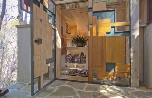 2) Unfortunately windows have been left open during rain storms and with air running, so the cranks have been removed from all windows to preserve the wooden interior of the home. Enjoy the house and outdoor feel without opening the windows. You can hear the waterfall even with the windows closed and there are 3 double doors facing the waterfall that lead to the deck that overlooks the falls.