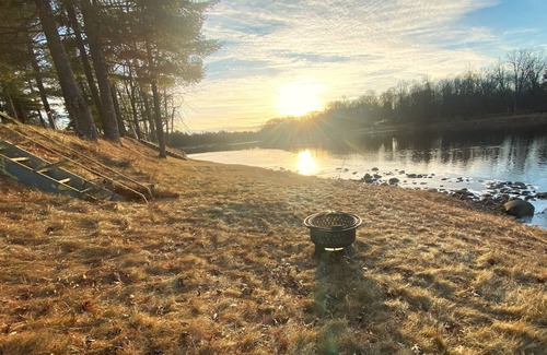 Come for world class hunting and fishing. Hook Sturgeon, Bass, Walleye and more from the river shoreline fifty feet from the deck. Minutes away from Shakey Lakes Park with fishing, ice fishing, boating, swimming and hiking options available.