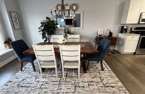 You will love this beautifully-decorated and well-appointed condo on Spring Lake and a short car ride or bike ride to the famous Lake Michigan beaches of Grand Haven State Park. It's in a perfect location for both fun, food, and relaxation. The unit is located on the second floor of Lake Pointe Condominiums with an incredible view looking over the main body of Spring Lake and boats in the marina seen from the deck, living room, and dining room. The Spring Lake/Grand Haven bike path runs near the building and with four bikes available to you, this would make a very fun activity for you and your guests. There is an accessible elevator off the condo's main entrance to make loading and unloading easy. Lake Pointe Association includes Barrett's Marina seasonal pool, picnic, and pavilion amenities. Condo features two bedrooms and two full bathrooms. The master bedroom has a king-sized bed, TV, two large closets with built-ins, and a private full bathroom with both a tub and a shower. The second bedroom has a queen-sized bed, television and closet. There is also a second full bathroom and laundry room with a new washer and dryer. The main living area is an open floor plan and includes the kitchen, large island with granite counter tops all around and bar stools, large dining room table, a living room with a sofa bed, and a large screen TV with AppleTV remote. There are 2 beds which sleep 4 plus a sofa bed. Upon arrival you will receive a key fob allowing access to the indoor parking spot in the attached parking garage as well as access to the very secure building. In the condo there will be a welcome folder with a list of great local restaurants, attractions, and shopping in the area.
