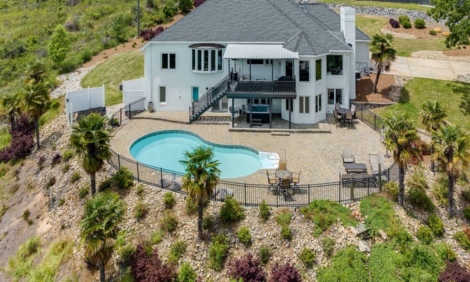 Beautiful Waterfront Home with abundant outdoor seating, pool, hot tub, grill | House in Rock Hill