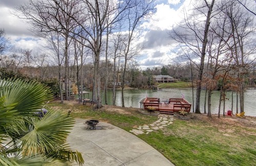 Beautiful waterfront! Large patio and covered porch. Dock, Fire pit, Game room | House in Charlotte