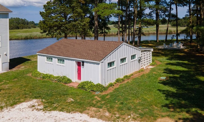 There is a fanciful quality to this secluded property where nature's beauty and luxurious accommodations coexist in quiet harmony. Located on the banks of Holden's Creek, a headwater of the Chesapeake Bay and a 20-minute drive to the pristine white sand Atlantic beach on Assateague Island, The Creek Guest Cottages are private, convenient, and offer bespoke modern amenities. Explore life off the beaten path and take a true vacation. Whether you are kayaking or paddle boarding on the creek, sitting by the fire pit, biking down country roads or going to the beach, you will find plenty to do or enjoy doing nothing at all. The views of the creek are magical at any time of the day or night from inside your cottage or from any vantage point on the 3-acre property. The cottage has been designed and decorated by a professional interior designer.
