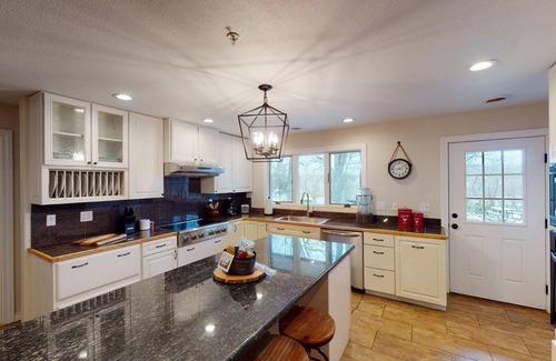 This captivating cabin features seven generous bedrooms and four bathrooms, ensuring everyone stays comfortable and relaxed. Enjoy the flexibility of two fully equipped kitchens, ideal for catering your wedding feast or hosting bridal brunches. The gorgeous pavilion is perfect for ceremonies and receptions, complete with a cozy stone fireplace that adds a romantic touch to your event. Take advantage of the beautiful outdoor spaces, including a private dock for photo opportunities and festive lakeside gatherings. For relaxation, unwind in the hot tub or indulge in the saltwater pool during your stay, creating a luxurious atmosphere that encapsulates both comfort and elegance.
