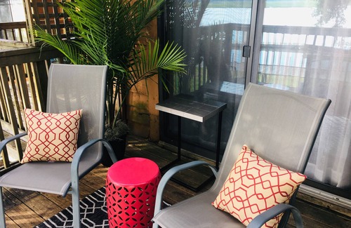 *Recently update interior! This one bedroom, one bath condominium has a spectacular water view of Battery Creek and is in close proximity to downtown Beaufort, Parris Island, beaches and water access. After spending the day exploring Beaufort and the surrounding sea islands, you can make dinner in the full kitchen and look for dolphins while relaxing on your private deck overlooking the water.