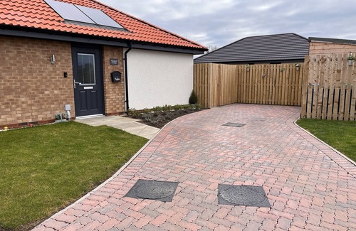 New build within walking distance to the harbour and outdoor pool. Beautifully furnished and decorated. Built in 2022 we bought it in March 2022. There is a large rear private garden with patio furniture. There is a modern open plan kitchen living dining area, one double bedroom and a second bedroom with two single beds. Bathroom has a large shower. Parking in the drive for two cars