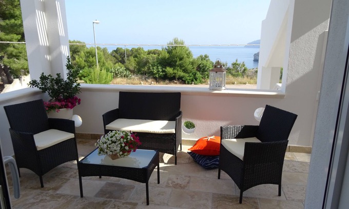 Apartment with sea view, has just been renovated with brand new furnishings. Ideal for a family of four, but also six and is composed of: Tinello, with dining table, 32-inch LED TV and double sofa bed, the kitchen is equipped with dishes and cookware for six people. Bedroom with double bed. Small bedroom with two beds that joined become a double. Bathroom with all accessories and large shower, all well finished. Outside, large sea view terrace with sitting area.