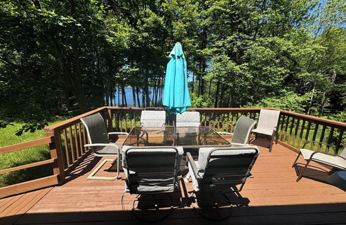 Relax and unwind in a roomy comfortable house in the woods right in the heart of the Keweenaw. Kick back on the deck and soak in the view with your coffee in the morning or your favorite beverage in the evening. There are 2 kayaks and a small fishing boat with oars to enjoy the serene inland lake, and the surrounding forest is a great place for a nature walk or bike ride, with amazing Fall color. We are 15-20 (relaxing) minutes to restaurants and bars, 10 minutes (can ride) to snowmobile trails, and 30 minutes to slopes or Houghton/Hancock (you can cross country ski, snow shoe or ice fish right from house)! Reconnect with your family or friends around the fire under the stars or wood stove, share a meal made in our large, fully equipped and well stocked kitchen (we have a wide array of cooking/baking staples and herbs and spices), or on the big gas grill. There are 3 different seating areas and 3 eating areas (one on each level and deck), with large tables accommodating 8 to 12 inside and an outdoor dining table with room for 6 to 8. Nearby, experience one of Lake Superior's finest sandy beaches, pick blueberries, or take a hike to Hungarian Falls. Copper Harbor and Brockway Mountain are around 48 miles away with many points of interest along the scenic drive. On a rainy day, visit historic Calumet, the rock and mineral museum at Michigan Tech, or tour the Quincy mine. There are plenty of board games, pool or ping pong, or just curl up with a book and watch the snow fall (winter) or listen to the birds sing and the frogs chirp (every other season). If you prefer to stream a movie or a game, we have HBO, Disney, Hulu, ESPN, Netflix and more. There is a full laundry and we provide most of the things you will need, including Public Goods toiletries, comfortable mattresses, linens, paper products and pretty much everything else!