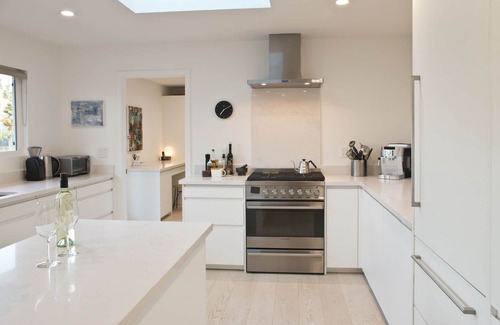 Green Valley Retreat is a magnificently remodeled home with high-end taste. It's a wine county gem in an agricultural community celebrated for the Farm to Table food movement. Charming and renowned restaurants and wineries are minutes away, but you can pick fresh produce from the massive guest garden and (newly planted) orchard. Additional fruit trees are scattered throughout the property. With a large in-line gas BBQ on the back deck, and choice dining in or outside, guests love cooking in as much as going out. The kitchen boasts plentiful counter space, deluxe appliances and quality accessories.