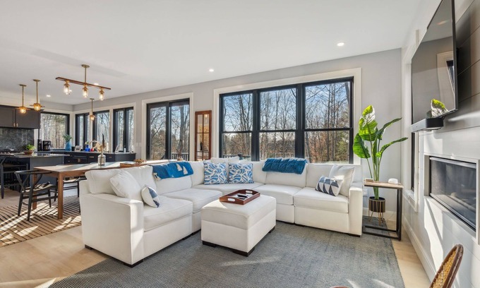 The living room with a fireplace and beautiful white sectional is open to the dining room and kitchen. There is a tv in the living room, owner's suite, and in the basement. Only a short drive, uber or bike away from the famous Portland Headlight, downtown Portland, restaurants, bars, and most importantly the ocean and beautiful beaches. This home is perfect for adults wanting to getaway and relax.
