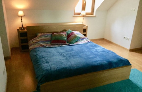 Our renovated farmhouse with large outdoor swimming pool (with safety fence), heated and available for use from mid-May to mid-October - is set in a tranquil hamlet surrounded by countryside, and is situated at the heart of the hamlet behind the old lavoir, where the people of the community used to come to wash their clothes. The only noise you are likely to encounter will be from the passing tractors and cows. At night you can sit on the beautiful terrace under the pergola and enjoy star-gazing, undisturbed by any competing light. The terrace benefits from outdoor dining and lounging furniture and lighting, and a barbecue. In the daytime keep a lookout for the buzzards, rabbits, and deer that appear both in the garden and in the surrounding fields. The house, formerly two farmhouses and two barns, has been renovated to a high standard with original features throughout but all modern conveniences such as underfloor heating and quality fittings in the spacious and well-equipped kitchen and four bathrooms and downstairs toilet. The kitchen has a double-oven and grill, plate-warming oven, dish-washer, food-mixer, two coffee machines (capsule style and filter), Raclette machine, extensive cooking and baking equipment and a large dining table and chairs, plus two high chairs. In the separate utility room, there is a washing machine and dryer plus an iron/ironing board. The house has six bedrooms. These consist of four doubles, one quadruple (double bed with two single beds (one more in the nature of a child's bed), one room (through which access to two of the double rooms is necessary) with bunk beds and a single folding bed, a downstairs bedroom with a double bed and two rooms (the TV room and playroom) also benefit from double sofa-beds for the larger groups. The TV room has a television and a DVD player. In the playroom there is a desk and a children's table and chairs, with lots of toys, puzzles, table football and board (and other) games. The house has one fixed cot and one travel cot for guests' use. The three upstairs double bedrooms are all en suite, with bathroom 3 benefiting from a large corner bath, separate shower and two sinks. Both of the other en suite bathrooms have a toilet, sink and bath with integrated shower, and heated towel rails. The quadruple bedroom is located near the fourth full bathroom, down a small staircase: that bathroom has a toilet, sink and bath with shower.
