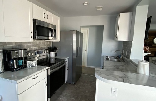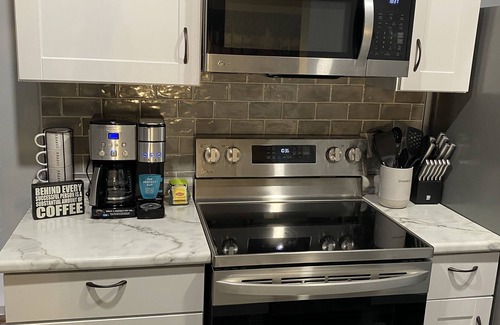 - Kitchen includes all necessities, including combo Keurig/standard coffee maker.
