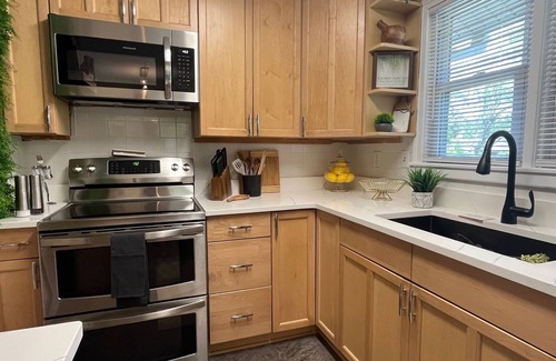 You will stay connected with reliable high-speed internet and enjoy entertainment on the 2 large TVs, perfect for streaming or remote work. While a variety of great local and chain restaurants are within a short distance from the house, you can also stay in for a home-cooked meal using the well-equipped kitchen. Alternatively, fire up the BBQ and grill-up your favorite dishes before relaxing by the firepit under the stars (wood provided).