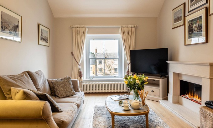 Topside is a beautifully refurbished, light and airy Cotswold holiday apartment which sleeps four guests, in two well-appointed bedrooms, with one spacious bathroom. This top floor apartment has a stylish and contemporary open plan kitchen/dining area which leads out onto the private roof terrace, boasting plenty of outdoor seating, a space to enjoy all year round. Indoors there is a pretty, inviting sitting room which oozes comfort and lovely features throughout including original exposed beams, high ceilings and sash windows. Topside is a dog friendly holiday home, suitable for two dogs.