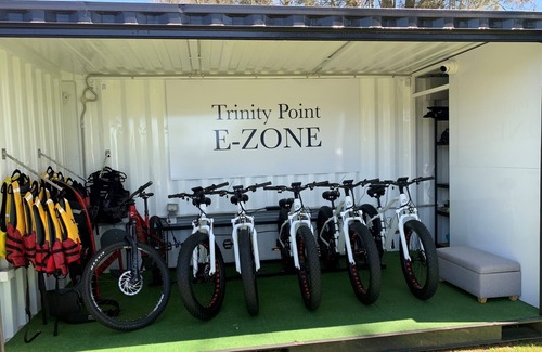We have eBikes, kayaks & standup paddle boards. There is no charge. They are located at the Marina office. To book, visit www.trinitypointmarina.com.au/watersports