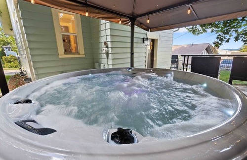 - Private Outdoor Oasis: Enjoy the serene backyard equipped with a hot tub, gas grill, and fire pit, perfect for post-wedding relaxation and gathering with friends and family under the stars.