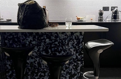 Set in a historic 90s office (now residential) block, this apartment boasts a high finish with full modern designer amenities with a retro monochrome aesthetic. Home to a local Architect, the apartment has been uniquely designed and arranged for ease of use and enjoyment and rents out as a “location” home for film and videography backdrop purposes.