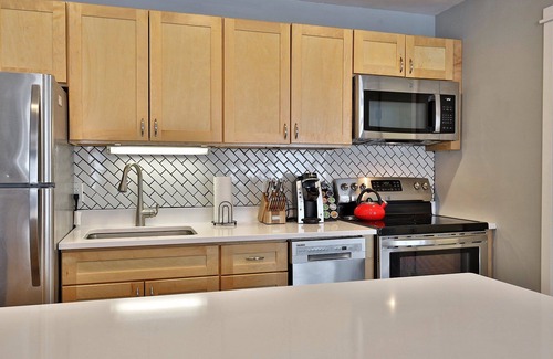 Your accommodations feature luxurious amenities designed for comfort and convenience. The main living area boasts a stylish open kitchen equipped with stainless steel appliances, a dining table for elegant meals, and a cozy sectional sofa perfect for gathering with loved ones. The primary bedroom includes a king bed and a private ensuite bathroom, while a second beautifully appointed bathroom ensures ample facilities for you and your guests. Additional features like high-speed Wi-Fi, smart TVs, and a gas fireplace provide everything you need for a relaxed and enjoyable stay, making it an excellent choice for pre-wedding preparations or post-ceremony celebrations.
